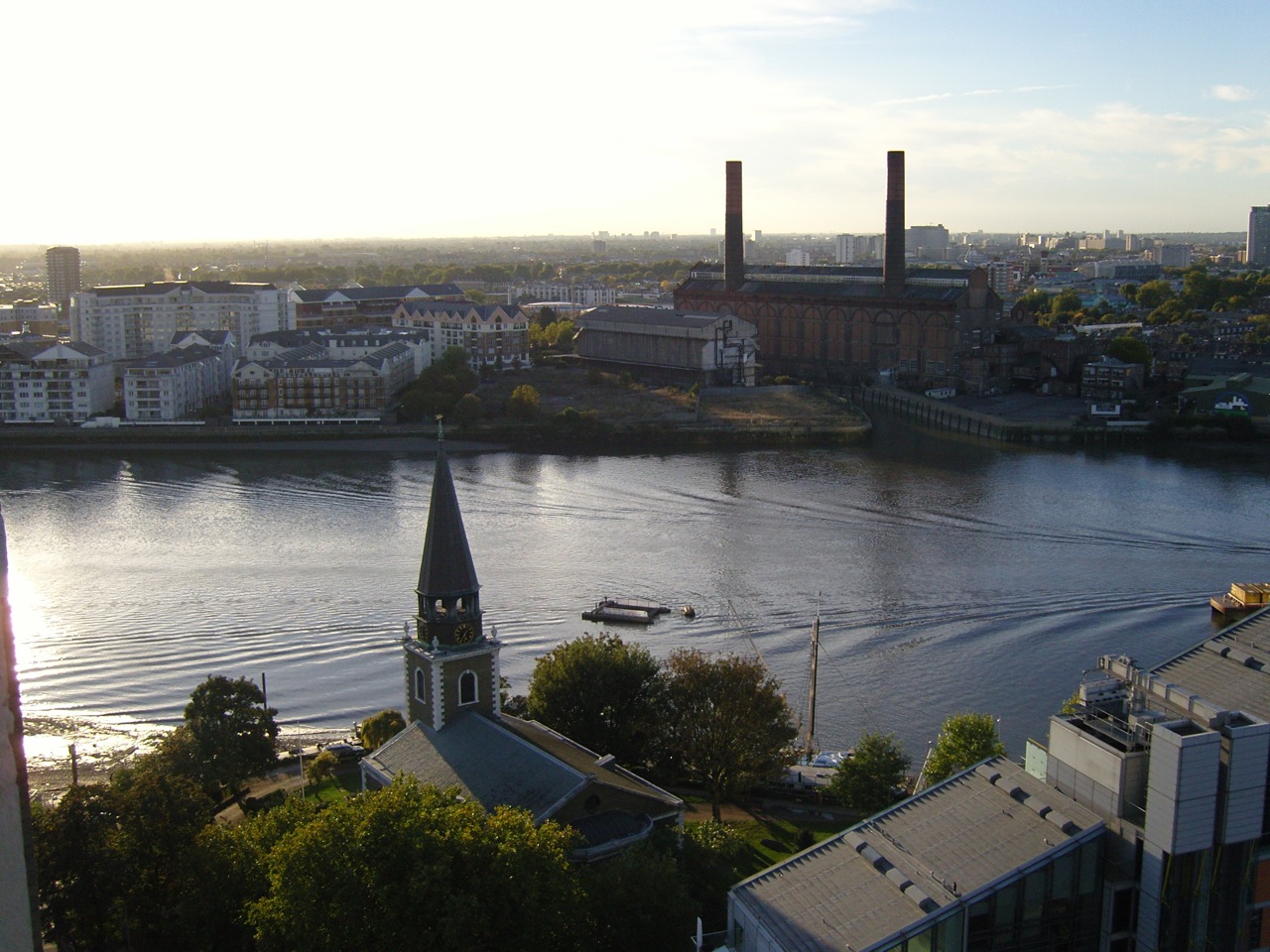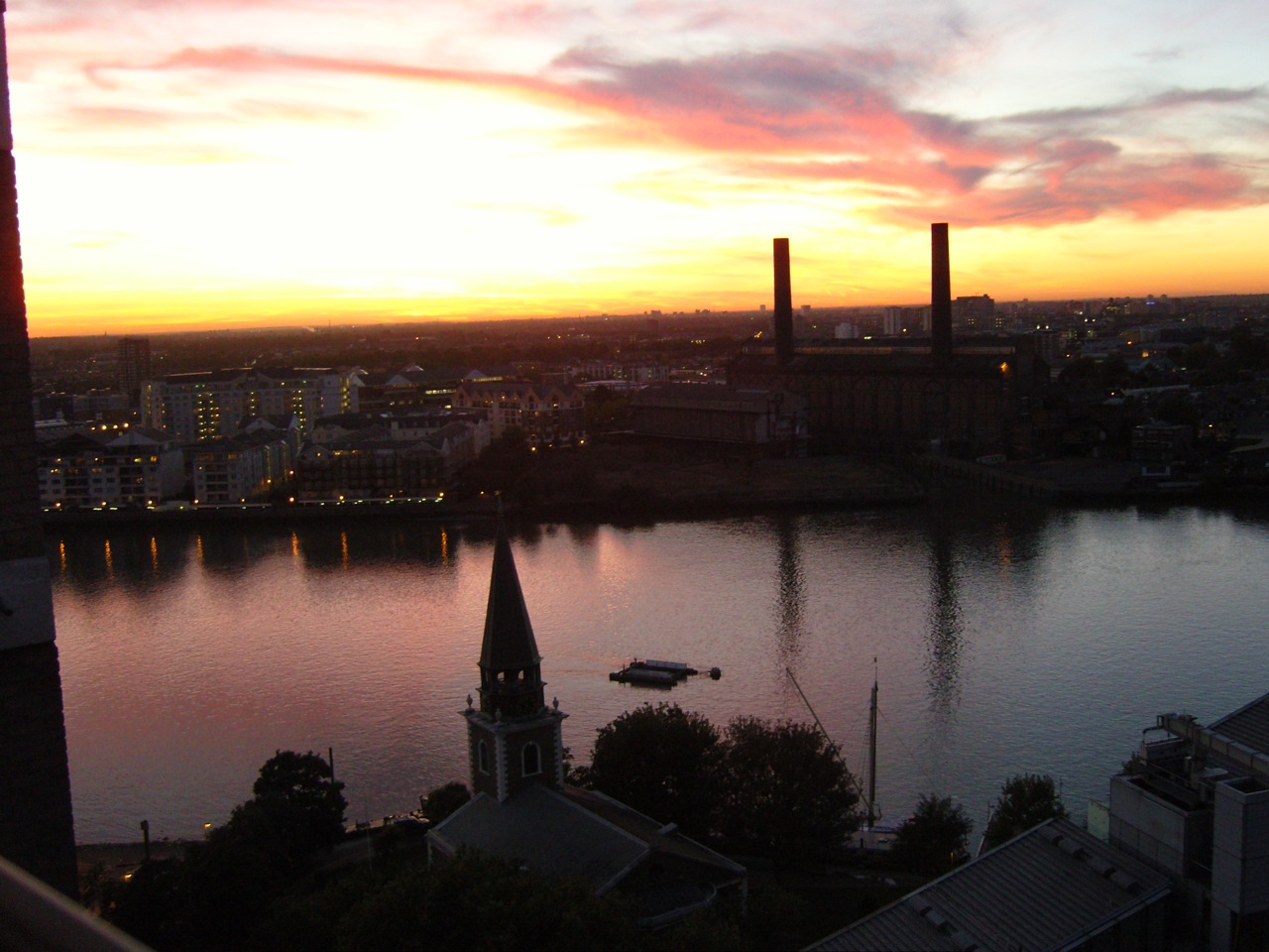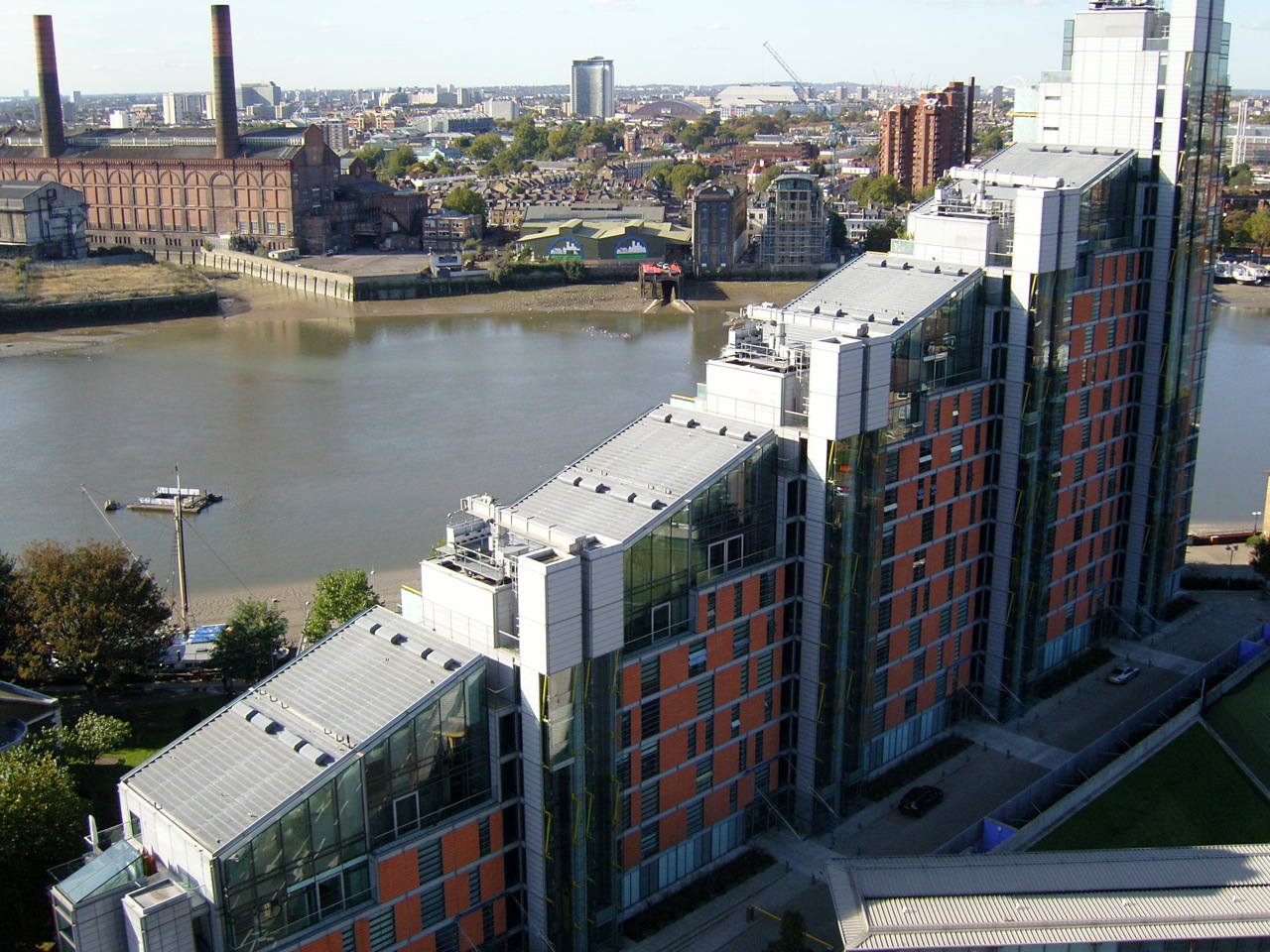 From the three side windows the view is north west out across Richard Roger’s dynamic Montevetro building and Christopher Wren’s beautiful St. Mary’s Church on the banks of the Thames, and over to the brooding Lots Road Power Station.